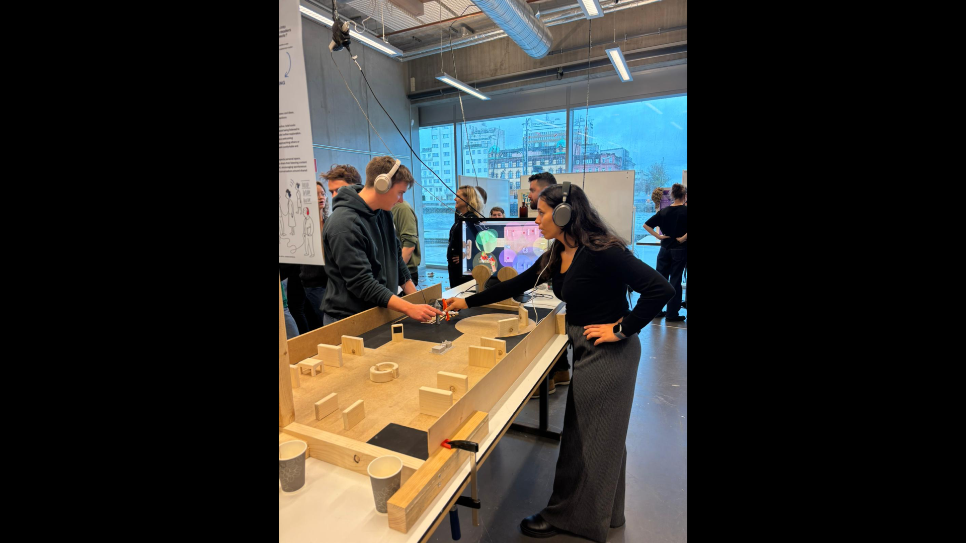 We created a scaled-down model of the Malmö City Library, 3D printed miniature versions of our five group members, and provided users with headphones. Visitors could “walk” through the miniature library and experience Audaura firsthand, exploring the sonic layers and interactive features of our design in a playful, hands-on way.