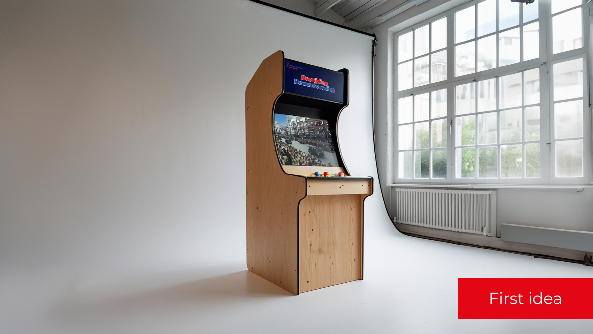Through brainstorming sessions, the idea emerged to present the experience within an arcade cabinet. I built the cabinet in the HKU wood workshop and integrated buttons and a slider for an intuitive user experience.