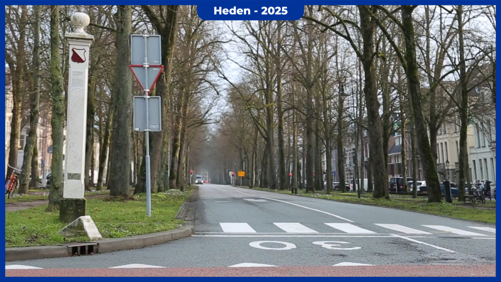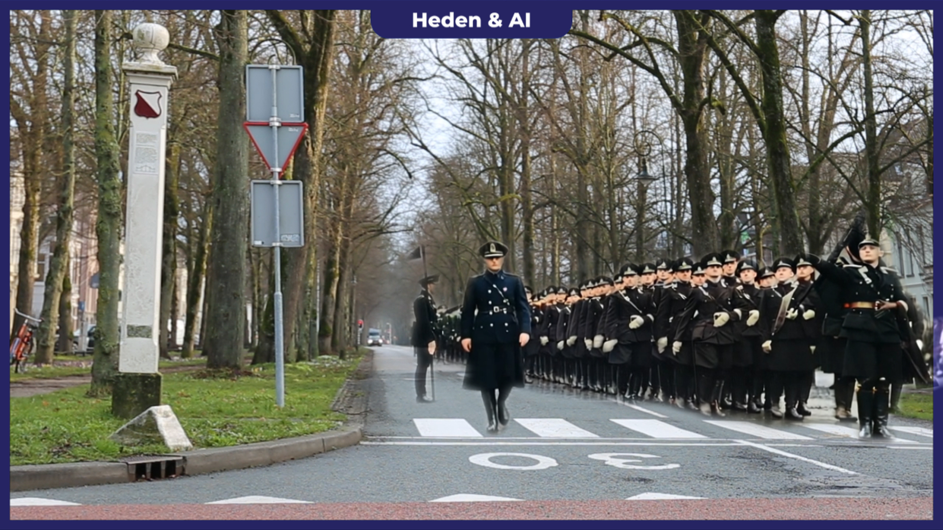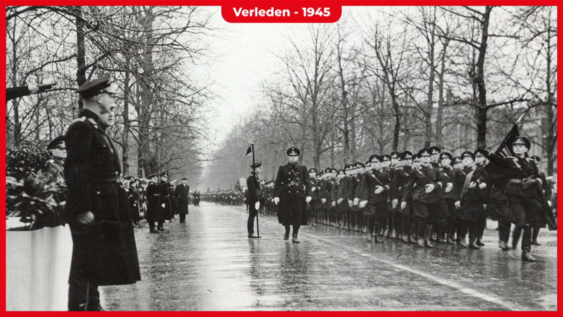 A mid-WWII photo showing the Maliebaan as a Nazi hotspot. In the center stands Arthur Seyss-Inquart, leader of the NSDAP in the Netherlands, with Anton Mussert beside him. This image is a powerful reminder of the occupation’s impact on Utrecht.
