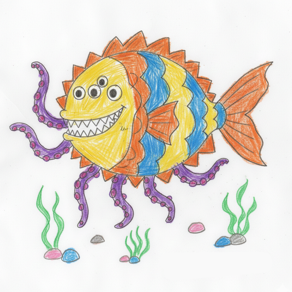 Once a drawing is uploaded via the web interface, the system uses a custom AI Image Recognition model. This model analyzes the drawing to verify it as a sea creature and classifies it into specific species (fish, shark, or jellyfish). This classification determines the creature’s 3D movement patterns and behaviors within the aquarium.